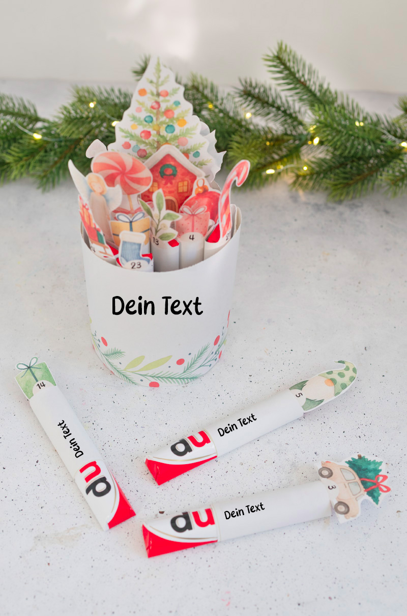 Zum Gestalten von einer Duplo Verpackung und Riegeln mit Sprüchen für Banderolen, passend als Mini Adventskalender. Du kannst diese schönen Botschaften ausdrucken und dadurch einen schnellen Weihnachtskalender umsetzen. BLANKO Version ohne Schrift!