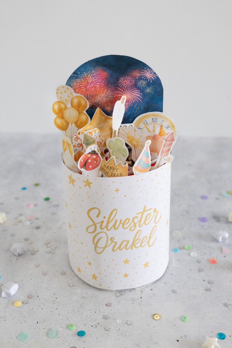 – 2 Banderolen für die Verpackung „Silvester Orakel“ und „Happy New Year“
