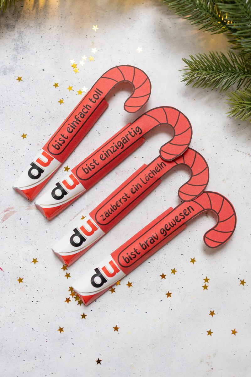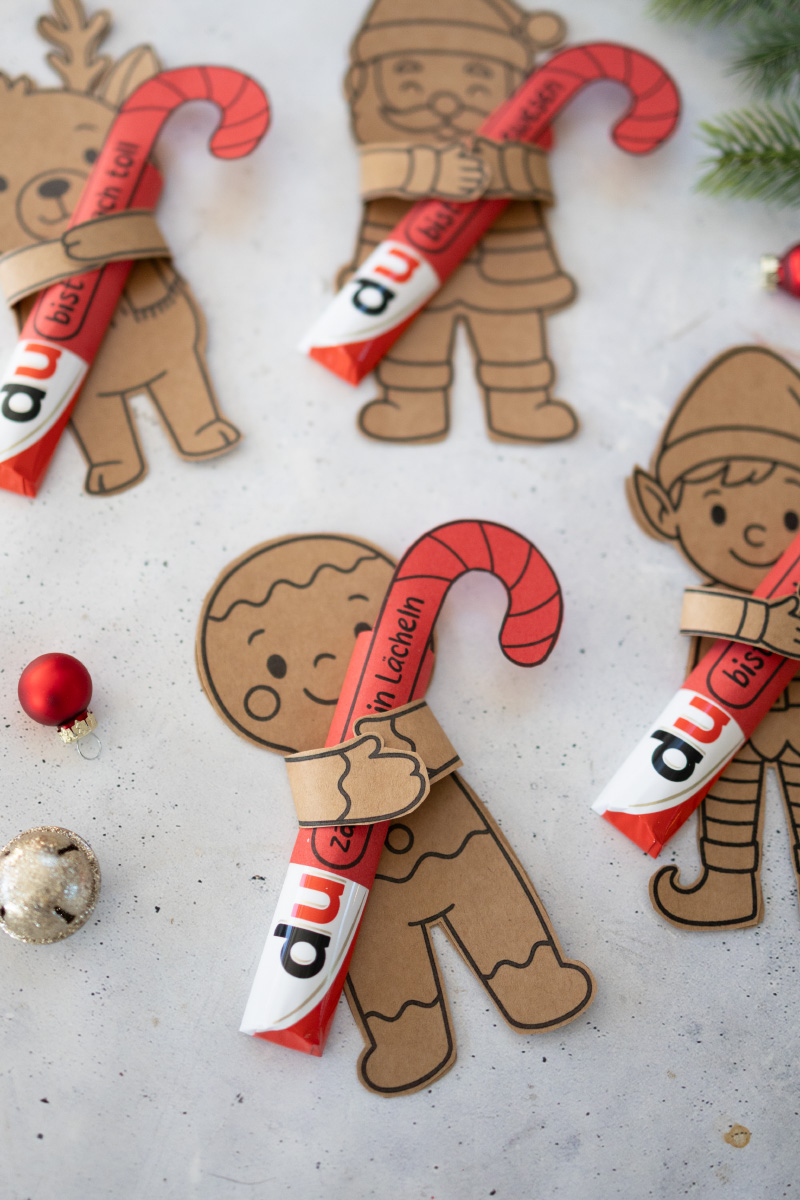 4 liebevoll gestaltete Figuren sowie Zuckerstangen Banderolen für Duplo-Riegel (Vorlage im PDF-Format)