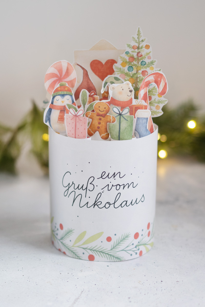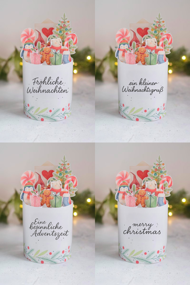 5 Banderolen für die Verpackung „merry christmas“, „eine besinnliche Adventszeit“, „Fröhliche Weihnachten“, „ein Gruß vom Nikolaus“ und „ein kleiner Weihnachtsgruß“