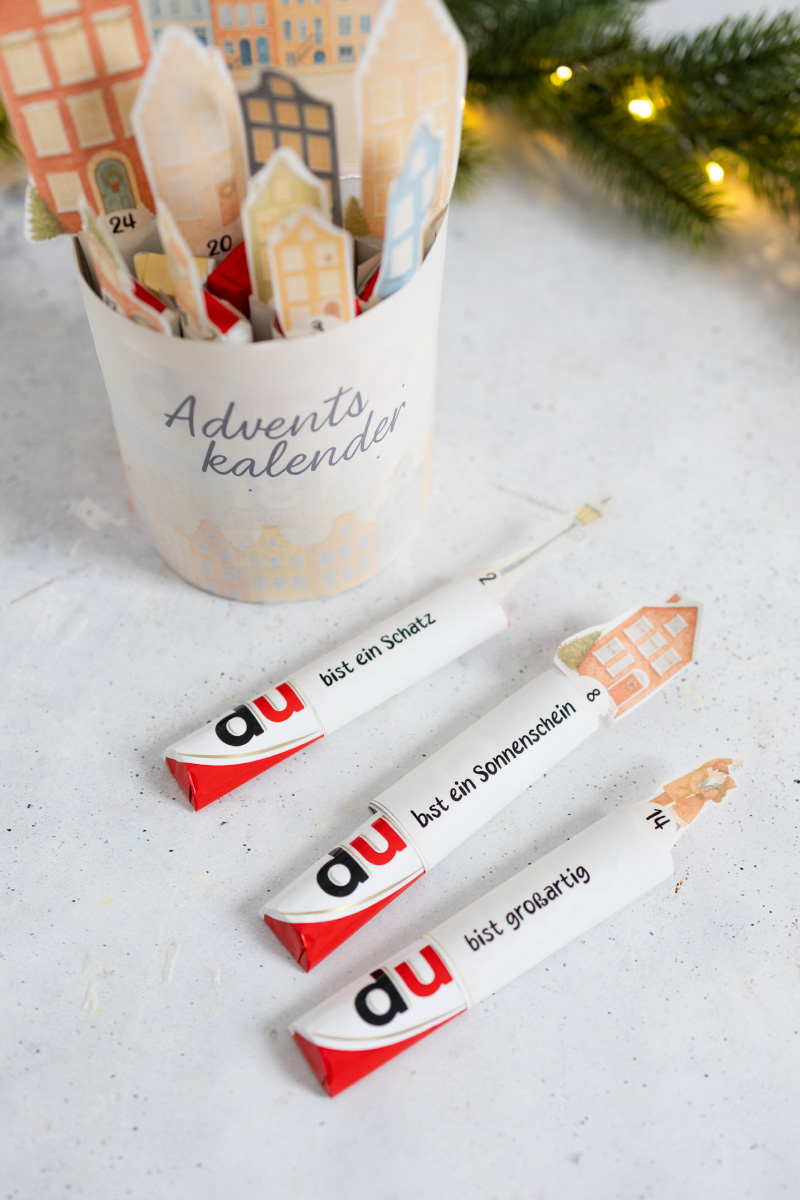 Zum Gestalten von einer Duplo Verpackung und Riegeln mit Sprüchen für Banderolen, passend als Mini Adventskalender. Du kannst diese schönen Botschaften ausdrucken und dadurch einen schnellen Weihnachtskalender umsetzen.