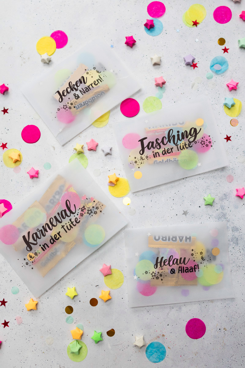 Zum Gestalten von Mitbringsel-Tüten für Fasching / Karneval.