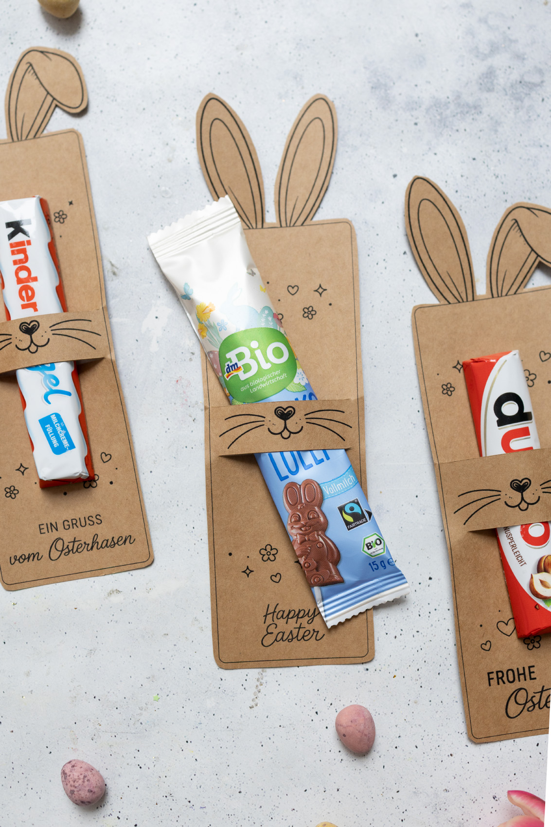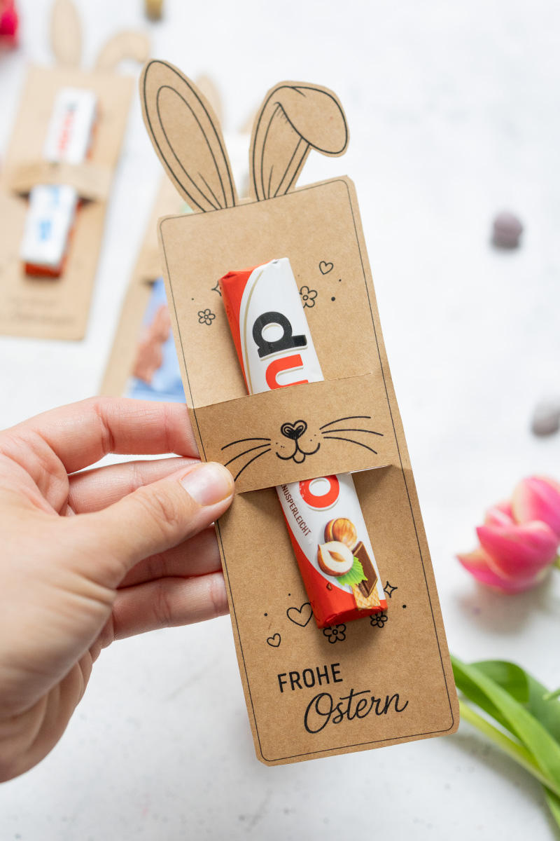 Oster-Mitbringsel für Schokolade mit Hasenohren – Vorlage zum Ausdrucken