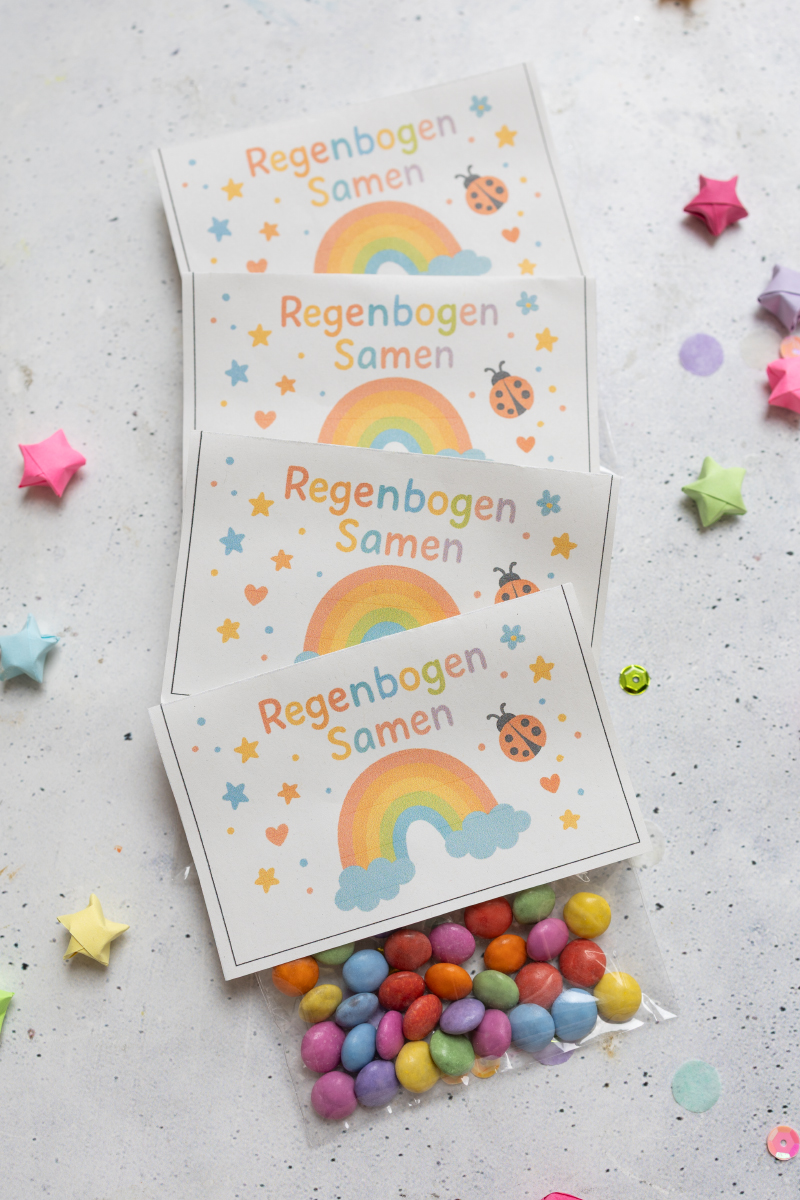 Regenbogen-Samen als Abschiedsgeschenk für Kita und Schuljahr gestalten.